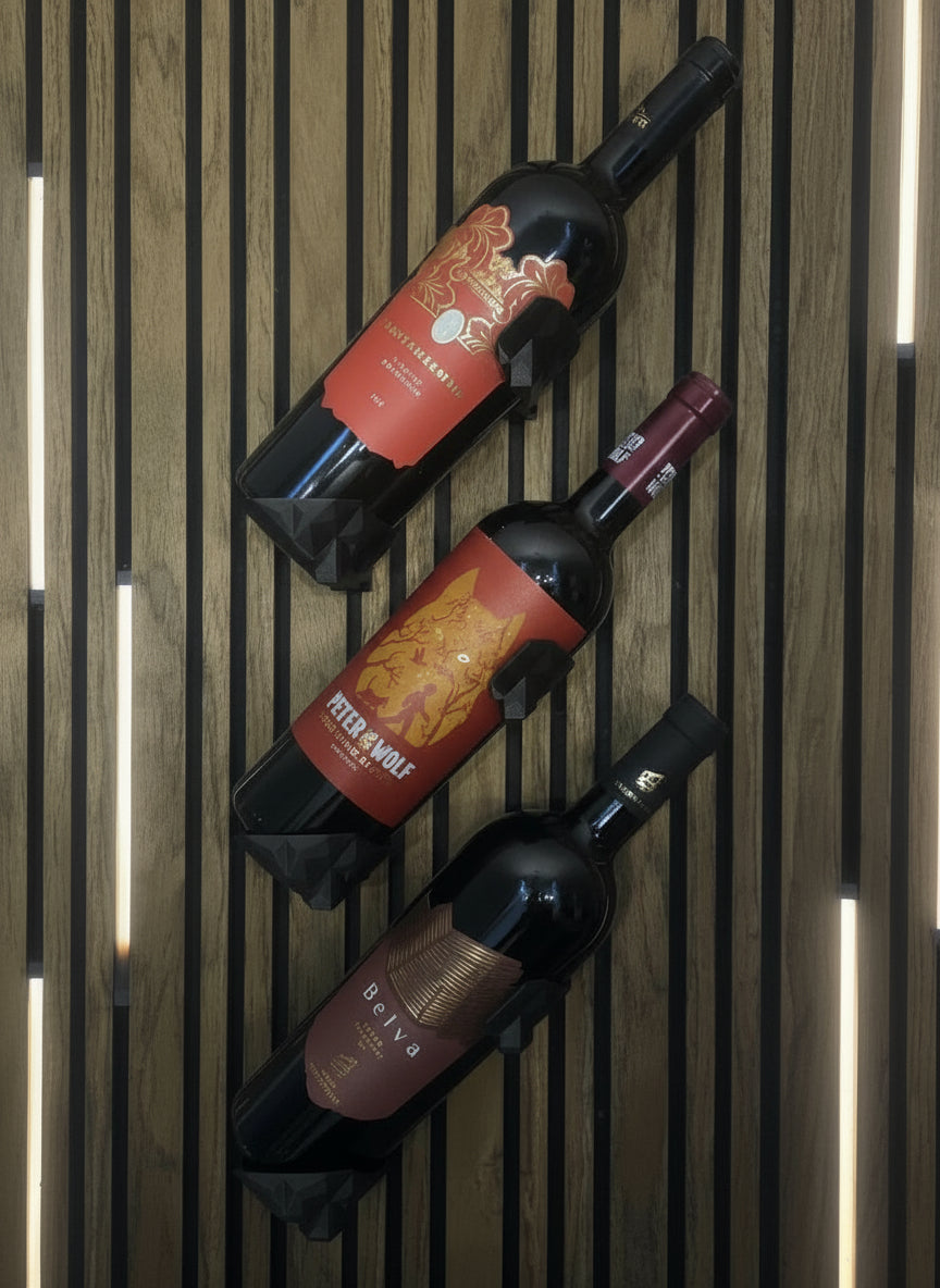 Giv dine vægge liv og funktionalitet - vis dine vine frem på en måde, der både er praktisk og æstetisk tiltalende. Holderen er designet til at passe perfekt til standardvinflasker og sidder sikkert på dit akustikpanel.